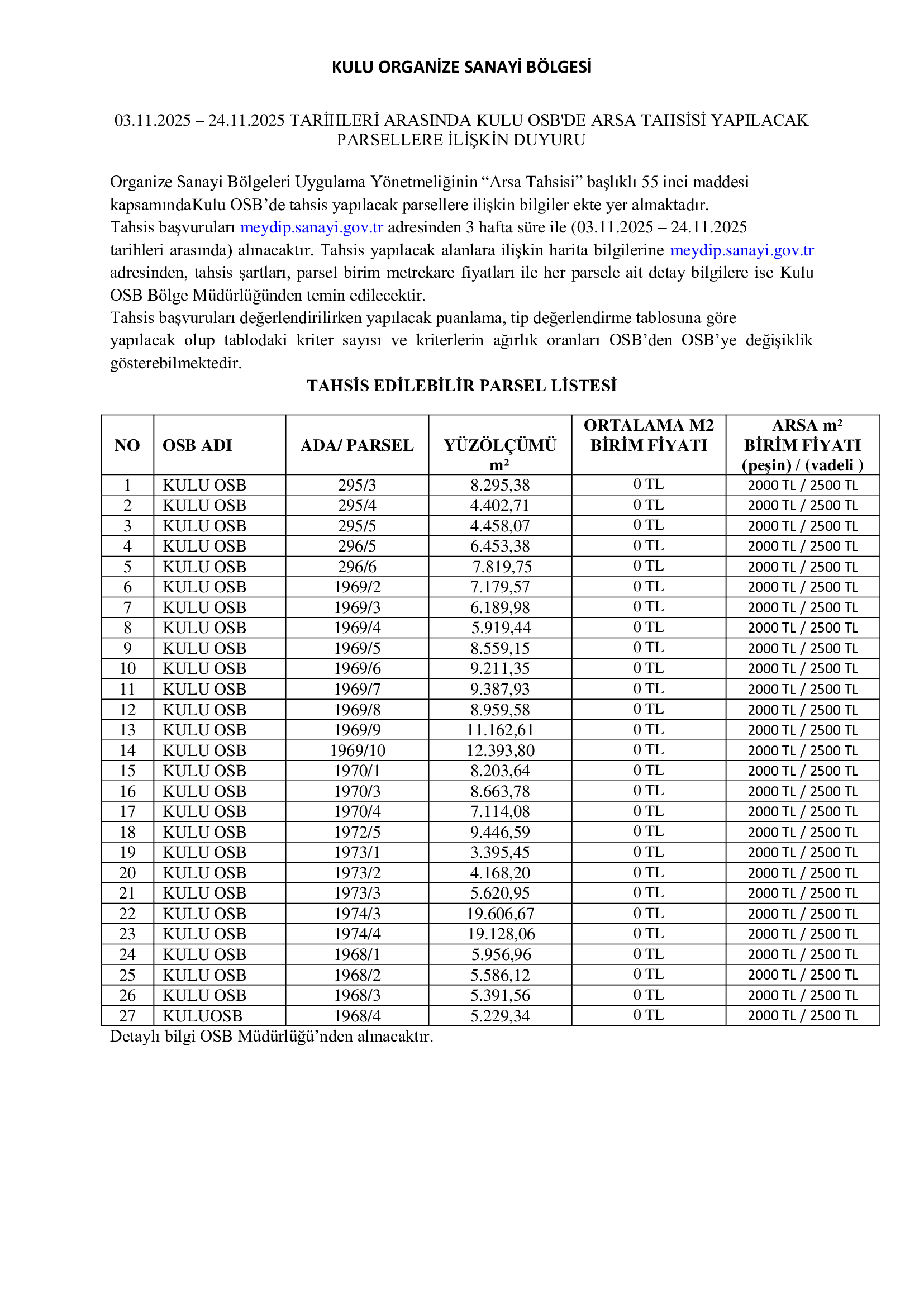- Kulu OSB bölgesel teşvik uygulamaları kapsamında yer almakta olup 4. Bölgede yer almaktadır.