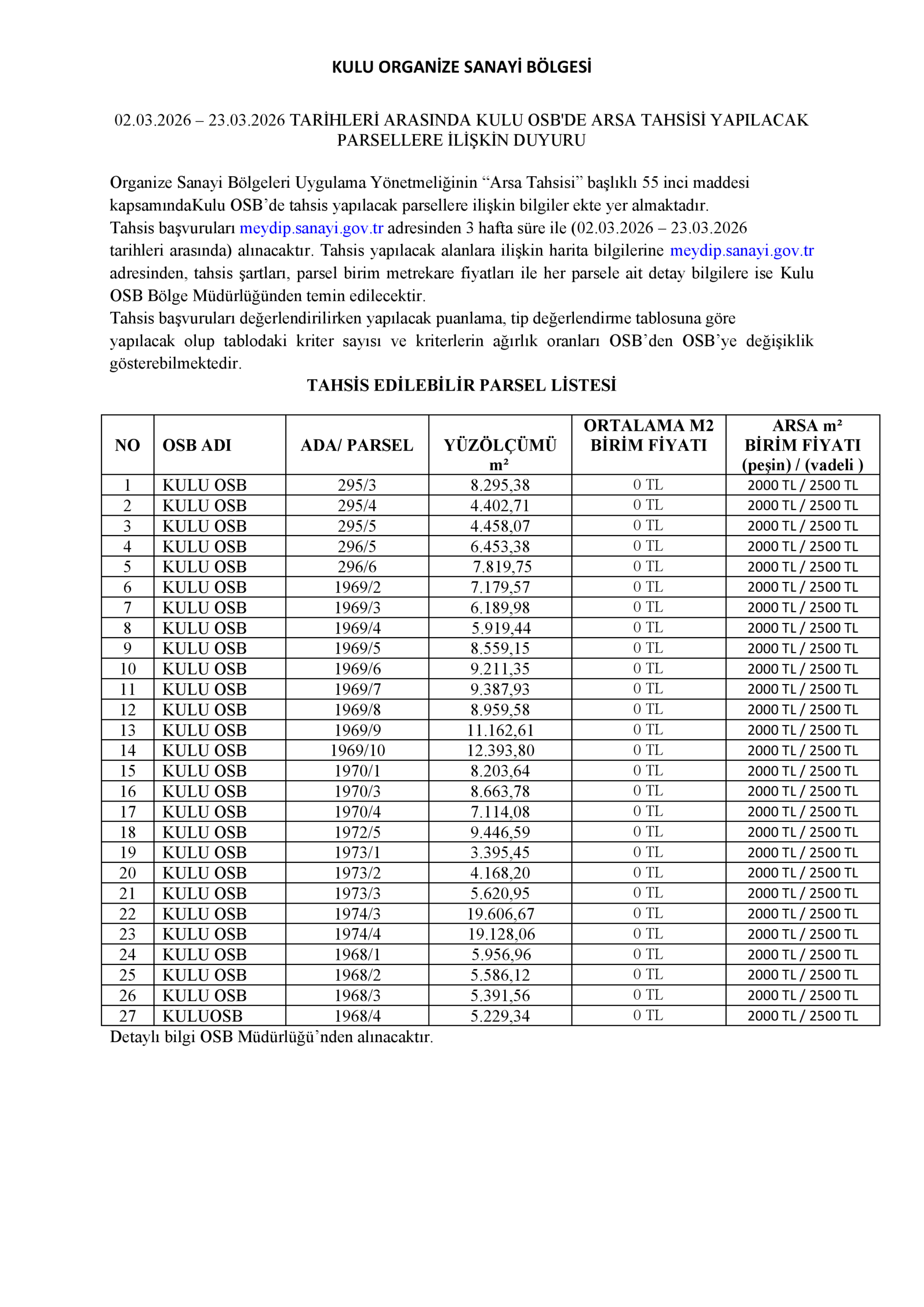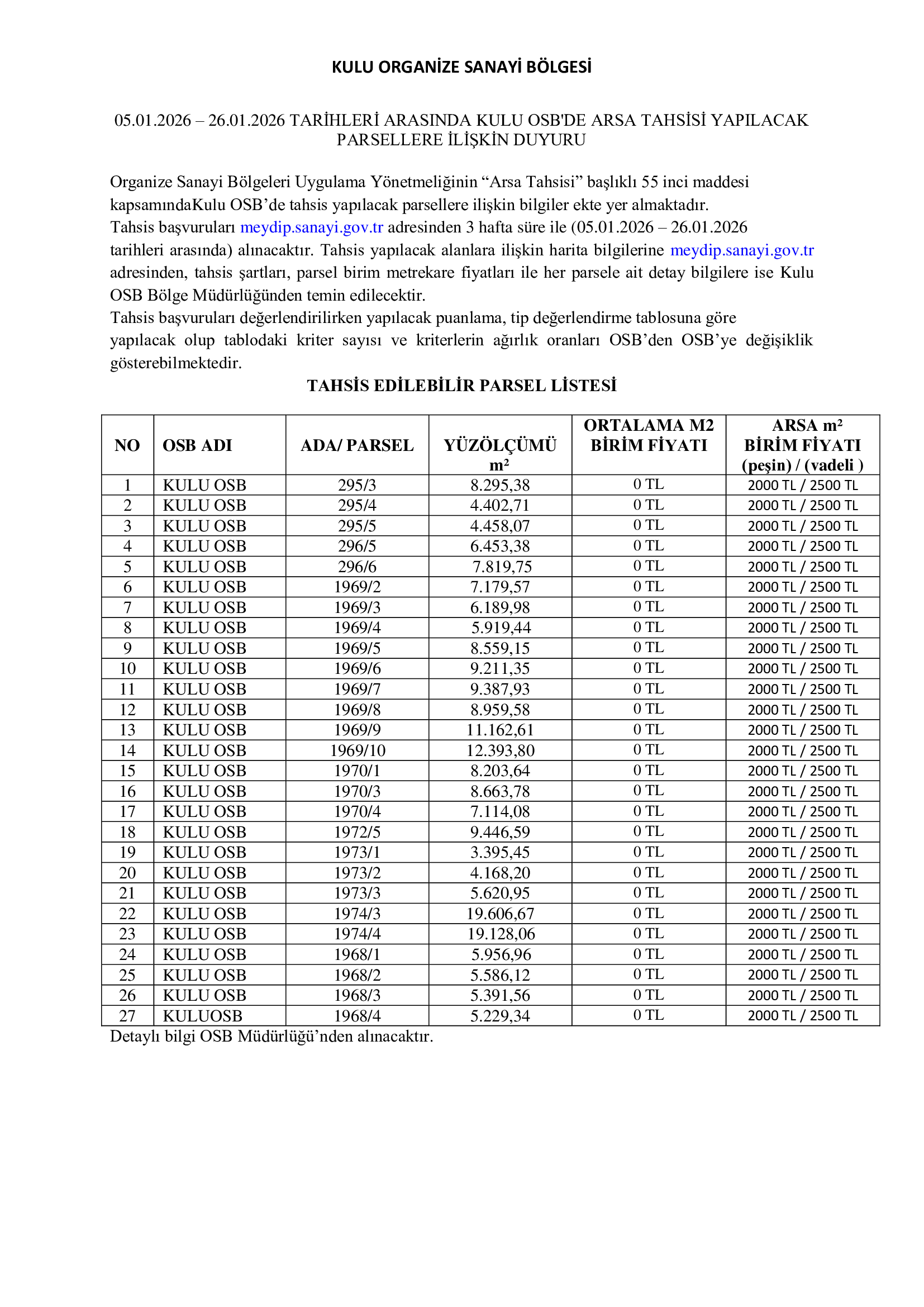 - Kulu OSB bölgesel teşvik uygulamaları kapsamında yer almakta olup 4. Bölgede yer almaktadır.